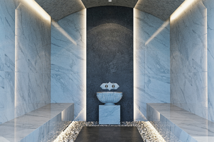 Температура в турецкой сауне находится в пределах 30 — 50 градусов, при этом влажность достигает от 90 до 100 процентов, что позволяет получить мягкое и обволакивающее тепло, которое прекрасно переносится, и благотворно влияет на организм.
